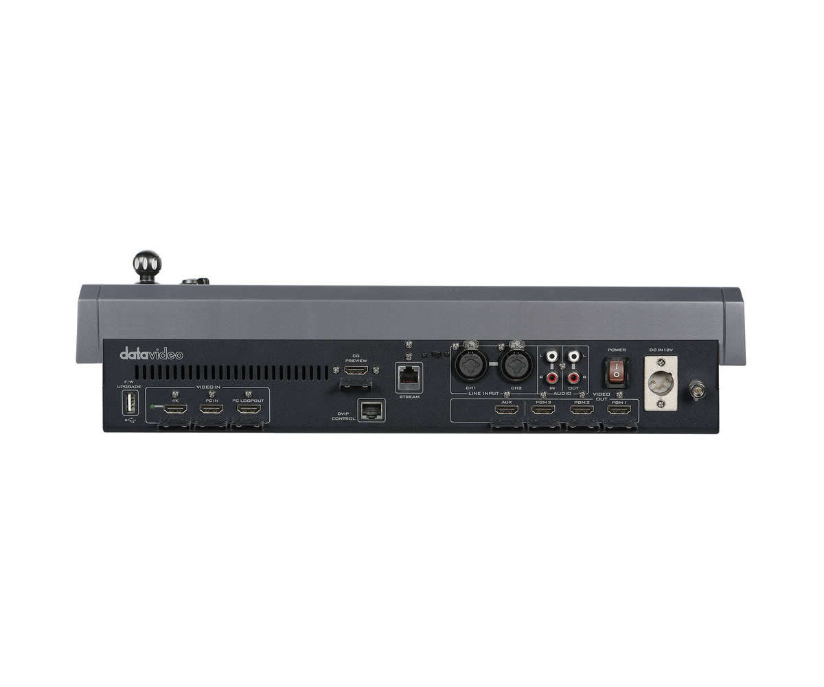 Streaming and recording are integrated on the KMU-300 – it can stream using the SRT protocol to improve delivery over unstable networks and simultaneously record locally to an SD card. The internal encoder supports h.264 recording and can stream to two direct destinations or use Datavideo’s dvCloud service for multi-platform distribution. Real-time statistics help monitor each source and destination during a live event.