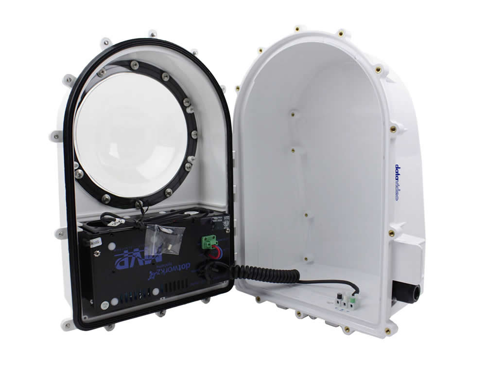 The heavy-duty, weatherproof D2-BASE-HEAT Camera Housing for PTZ/PTC Series with Heater Blower from Datavideo protects against theft, vandalism, and impact, such as from basketballs. IP68-rated, it also protects against dust, water, and salt water air. It’s also compatible with the Datavideo PTC-140, PTC-150, PTC-280, PTC-285, PTC-300, and PTC-305 PTZ cameras.