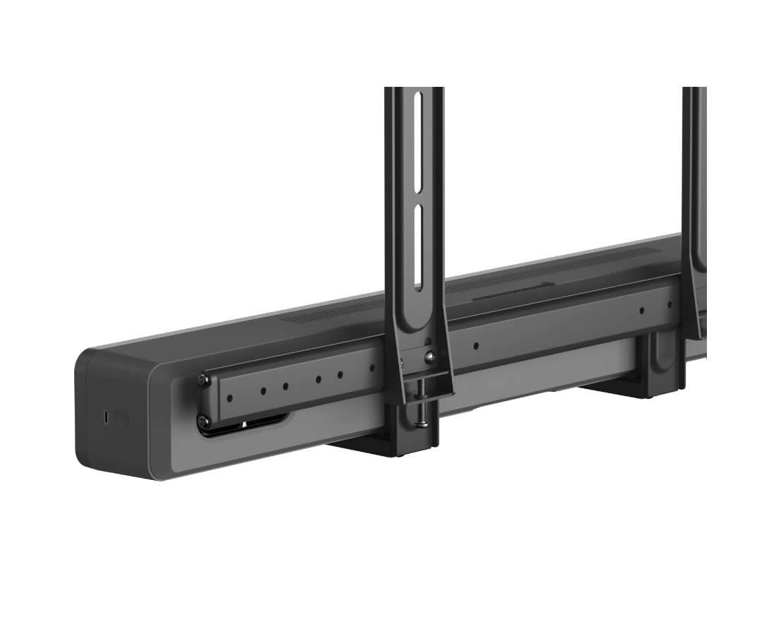 Compatibility is achieved through the mount’s ability to use an existing display bracket and a wide range of TV screw sizes and spacers. The mount aligns to common display mounting standards and accepts varied fastener lengths for thin and deep chassis. It is engineered to work with the Apollo VX20 video bar and similar form-factor devices that require an above or below display position.