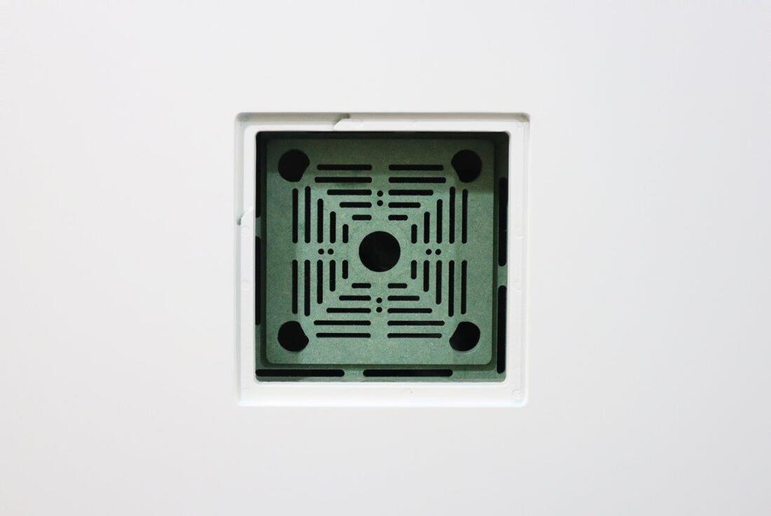Installation follows standard drywall procedures and is straightforward for qualified trades or AV installers – refer to the Wall-Smart installation guide. The adapter is supplied unpainted to be finished as part of the wall surface after installation. The moisture-resistant MDF construction provides a stable substrate for paint and wall texture finishes.