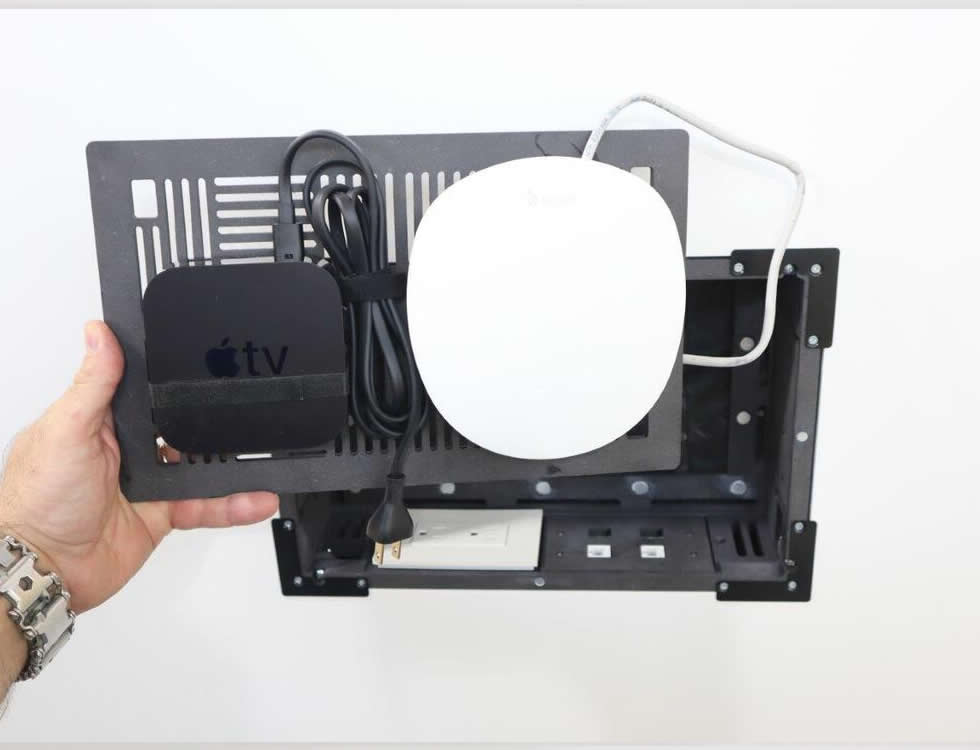 Connectivity and compatibility are managed via the supplied interchangeable inner plates that enable up to four keystone inserts and conduit connectors in 1/2″, 3/4″ and 1″ sizes. The adapter kit provides the mechanical interface between the device and the wall mount while allowing space for a Hubbell-Raco 420 switch box where required. The magnetic cover maintains quick access while concealing cabling and ventilation.