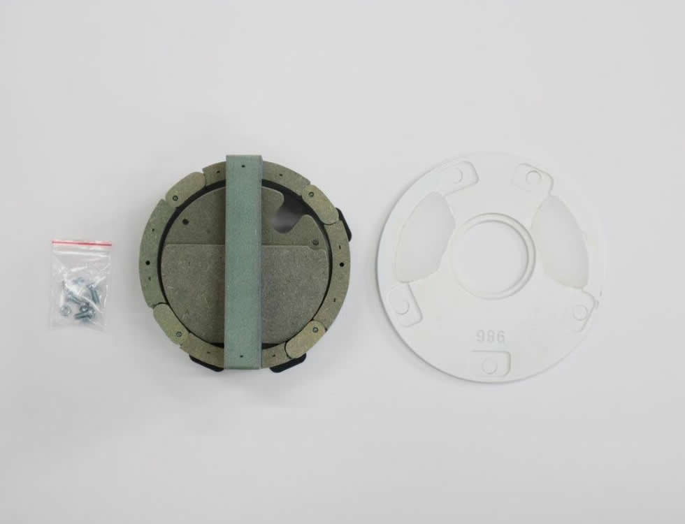 Technical specifications include a diameter of 153.5mm 6.04in and overall height of 77mm 3.03in. The adapter assembly weighs approximately 0.4Kg 0.88lbs and is manufactured from moisture resistant MDF compliant with TSCA Title VI. The design provides a firm mount and reliable mechanical support while minimizing visible profile.