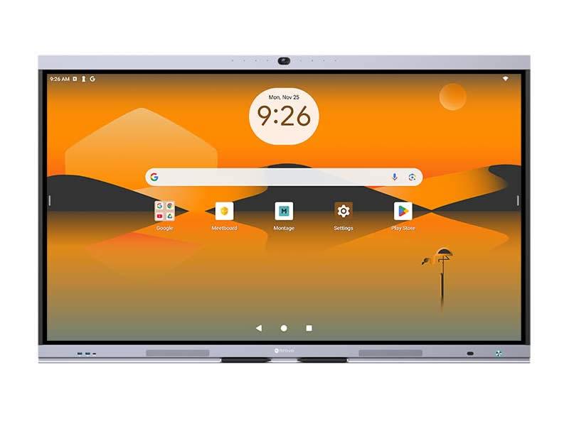 The AG Neovo MeetBoard 4 Prime 65″ UHD 4K Touchscreen Commercial Monitor is a 400 nits bright IPS display with built-in interactive whiteboard technology, a 4K camera, and an 8-array microphone, making it well suited to video conferencing and hybrid learning applications. Additionally, it features simple screen sharing, an Android 13 OS, and Google EDLA certification for easy access to common file types and popular applications.