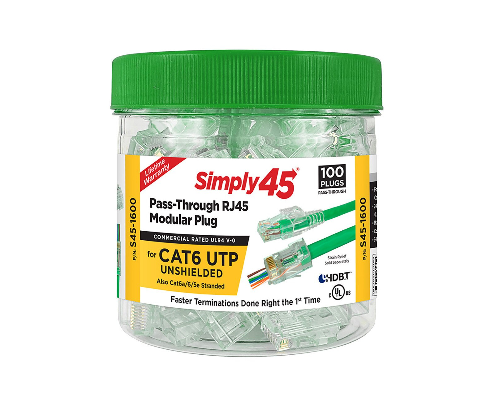 Pass Through Green Tint – Cat6 UTP – 100pc Jar