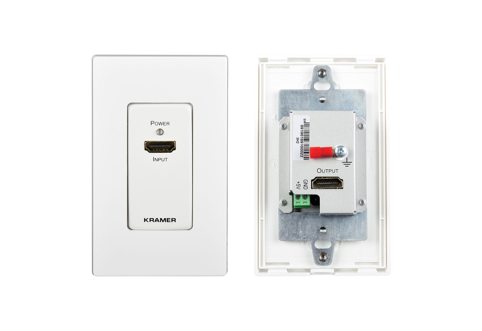 The white WP−3H2 4K HDR HDMI Wall-Plate Extender from Kramer is a 4K HDR HDMI unit that extends the HDMI cable distance between the HDMI player and the HDMI display by reclocking and equalizing the HDMI signal. Placing WP−3H2 in the transmission path removes dropout and digital noise (sparkles) in your picture that may result from using long HDMI cables.