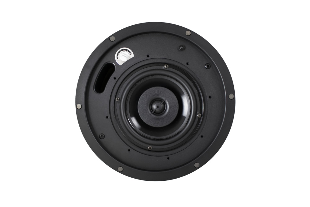 The CM62-BGM is a 6.5 in coaxial two-way in-ceiling speaker designed to deliver efficient full-range audio in commercial environments. It combines a polypropylene 6.5 in woofer and a 1 in silk dome tweeter in a ported steel backcan enclosure to extend bass and preserve clarity. The speaker is available with a white grille by default and an optional black grille for seamless décor matching.