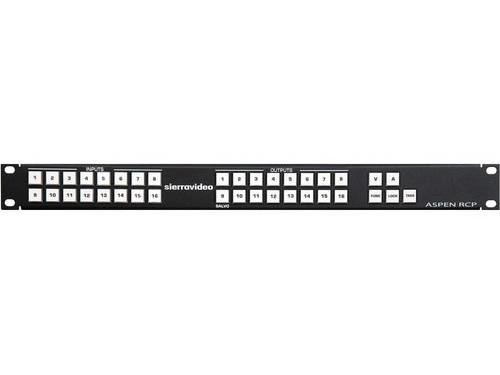 The Sierra Video RCP-1616 Remote Control Panel for the 16 x 16 3G HD Switcher duplicates the 37 buttons and functions of the local front panel of the Aspen 1616HD-3G Video Router. This 1RU Control Panel can be connected directly to the switcher or remotely via a network connection. 37 backlit multi-color LED buttons: 16 input, 16 output and 5 control 1RU standard rack mount size
