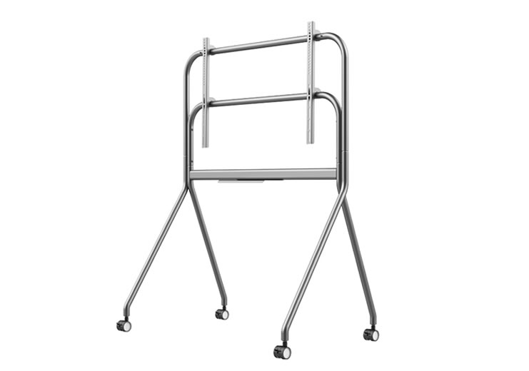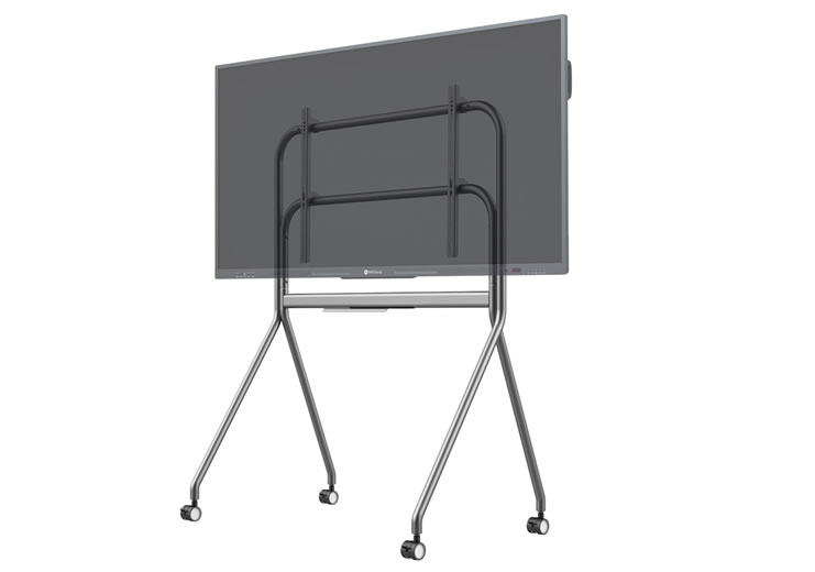 The FMC-07 floor mounting cart is a mobile support system designed to hold large format displays ranging from 55 to 86 inches. It provides a stable platform with a dedicated accessory tray and lockable castors to secure equipment during sessions. The cart is engineered to combine lightweight construction with sufficient load capacity for professional displays.