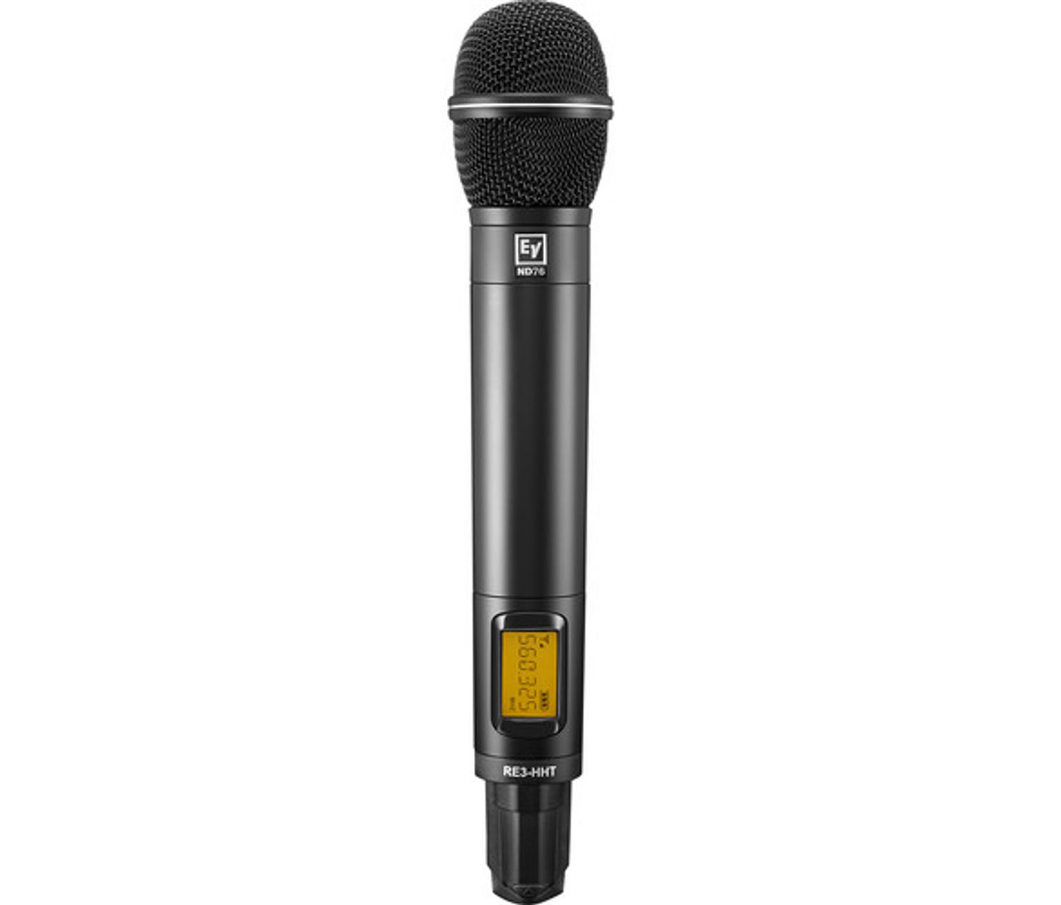 The Electro-Voice Handheld UHF Wireless Transmitter features an ND76 dynamic cardioid microphone head, specifically designed for vocal performance. This microphone head provides a crisp, clear, and balanced vocal presence, making it suitable for various voice applications. It is an ideal choice for both live performances and presentations, delivering quality sound reproduction.