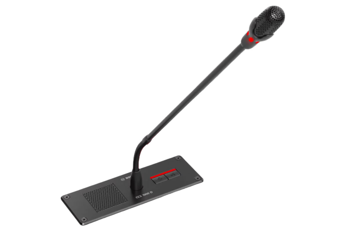 Typical applications include structured meeting rooms, council chambers, boardrooms and other formal discussion environments where a low-profile microphone and local monitoring are required. The built-in speak indicator and speaker make it suitable for systems that require clear speaker identification and immediate audio feedback. Its low RF susceptibility helps maintain intelligibility in spaces with mobile phone activity.