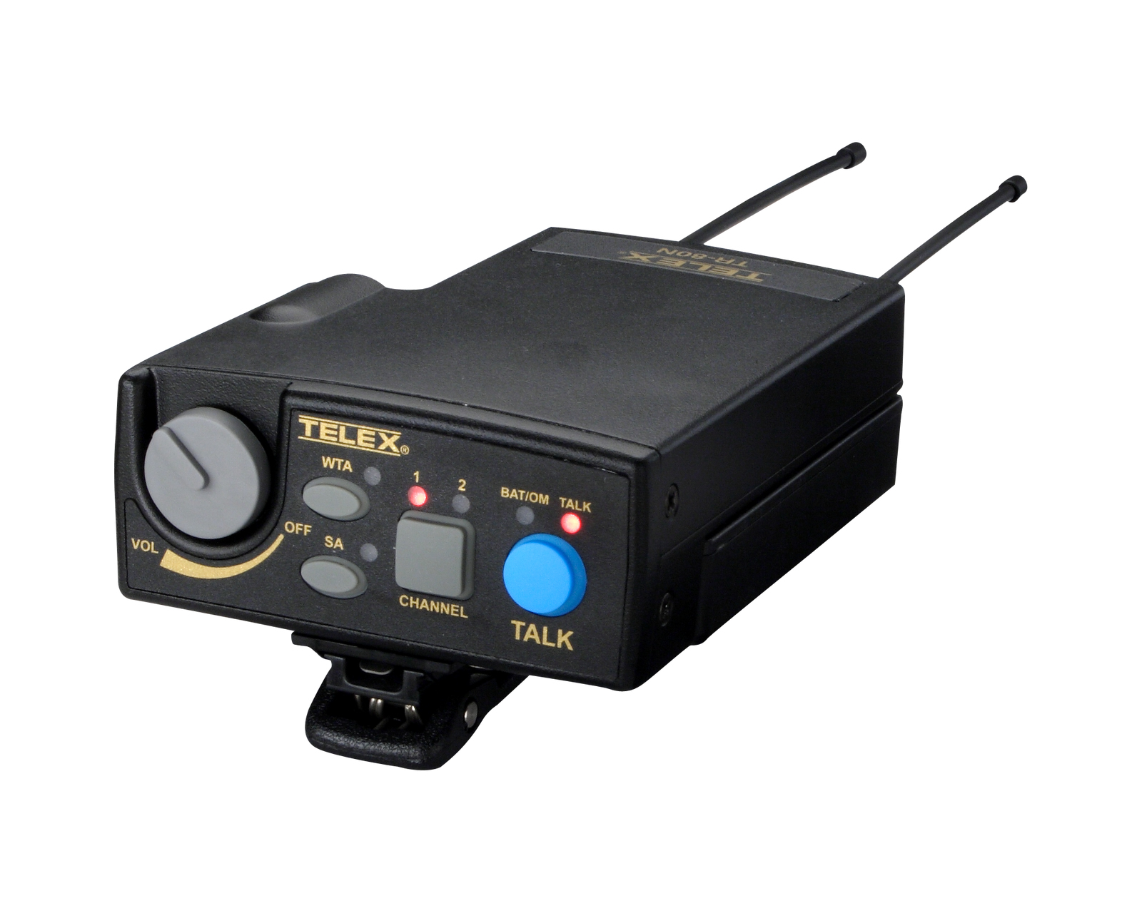 The TR-80N is a compact UHF narrowband two-channel wireless beltpack designed to operate with the BTR-80N base stations. This unit provides reliable wireless intercom communications for production and live-event environments. It is engineered for field use and built to withstand the demands of stage and broadcast work.