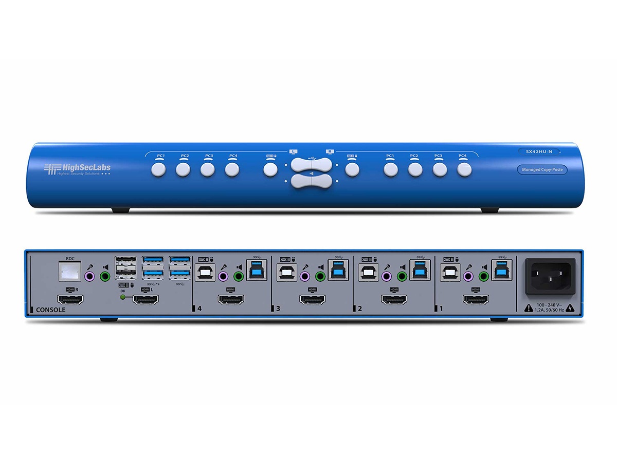The SX42HU-N is suited to meeting rooms, control centers and presentation environments where multiple computers must be displayed and controlled concurrently. It enables presenters or operators to show host and guest systems simultaneously on separate monitors while using a single set of peripherals. The built-in copy/paste transfer feature streamlines workflow between isolated systems without requiring network file shares.
