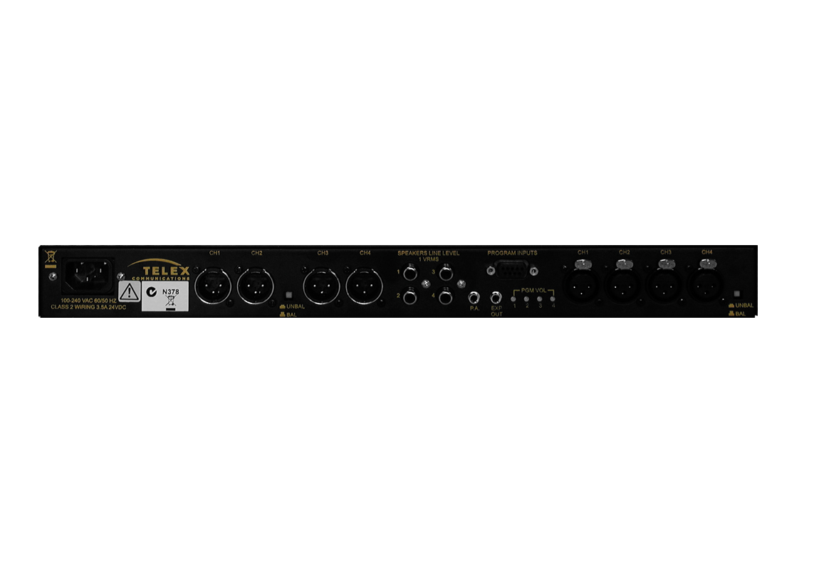 On the technical side, the MS-4002 accepts 100 to 240 VAC mains input and supplies 4.0 amps for the system power bus. It supports balanced audio operation and can run in unbalanced mode for compatibility with legacy equipment. The front panel features advanced programming controls eliminating the need for internal DIP switches and includes an instantaneous auto-reset function.