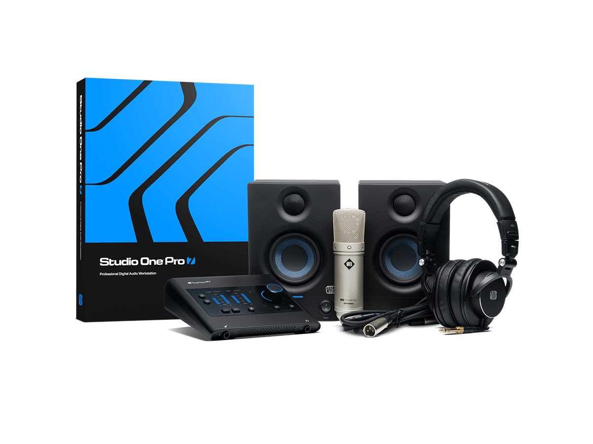 The PreSonus Quantum ES Ultimate Bundle is your one stop shop for professional studio-quality recording. Featuring the high-performance Quantum ES 2 USB-C Audio Interface with all-new MAX-HD mic preamps, a Studio One Pro software license and 12 months of access to tools, extras, add-ons, and more with Studio One Pro , a pair of powerful Eris 3.5 Studio Monitors packed with low-end punch, a pair of HD9 dynamic high-definition headphones, and an exceptionally clear M9 cardioid condenser microphone, the PreSonus Quantum ES Ultimate Bundle gives you everything you need to create like a pro.
