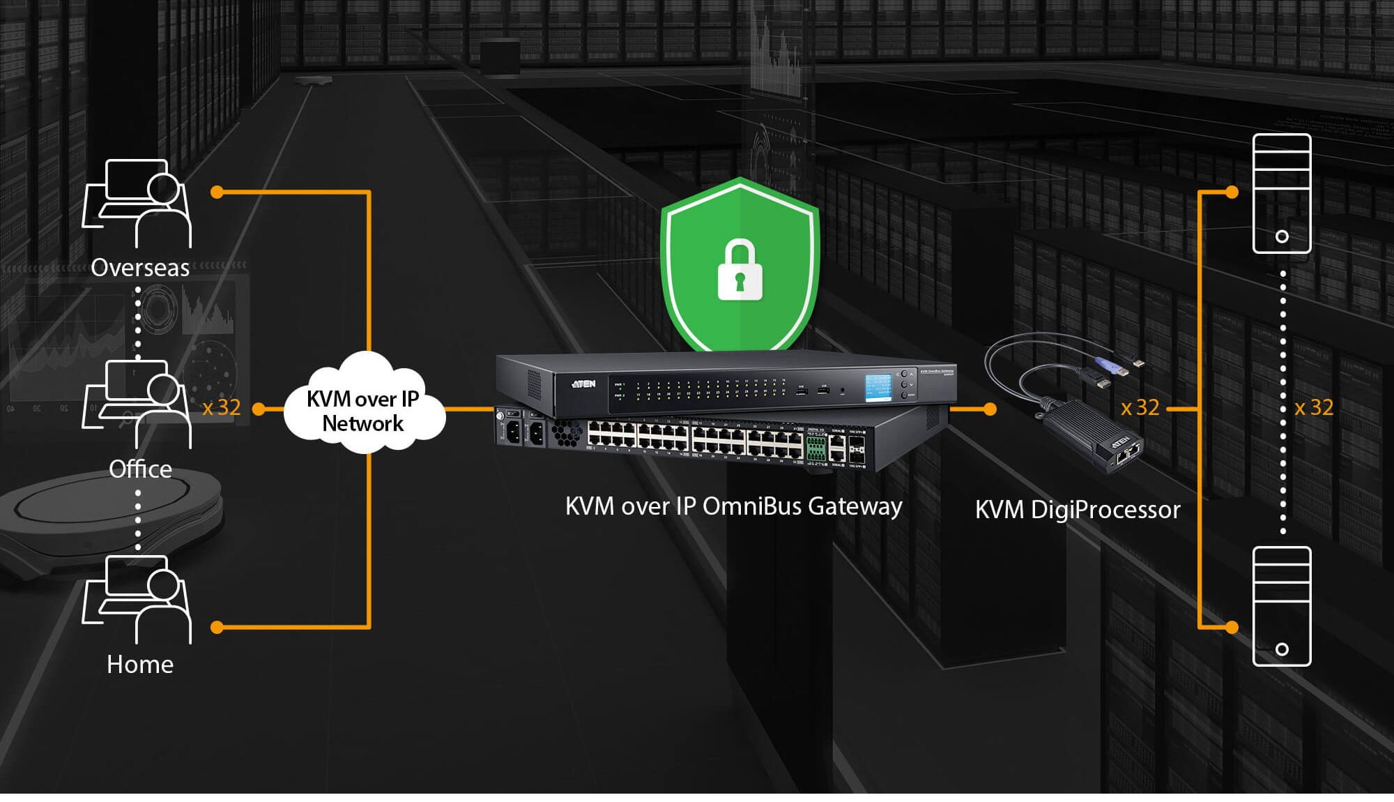 The all-digital KVM over IP OmniBus Gateway allows real-time access for up to