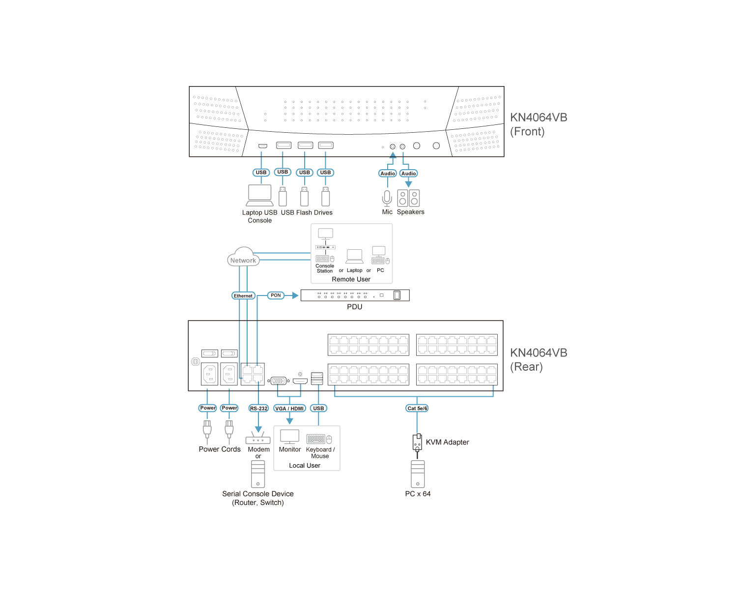 The KN series is compatible with ATEN’s KVM over IP Console Station – the KA82 series. The KA82 series is a standalone console that replaces PC or NB, enabling users to remotely access, monitor and control all servers connected to multiple ATEN’s KN series with impenetrable security against virus threats. It is especially suitable for environments where a PC is not allowed. In addition, the KN series works with ATEN’s PDU remote power management systems from the KVM over IP switches’ user interface.