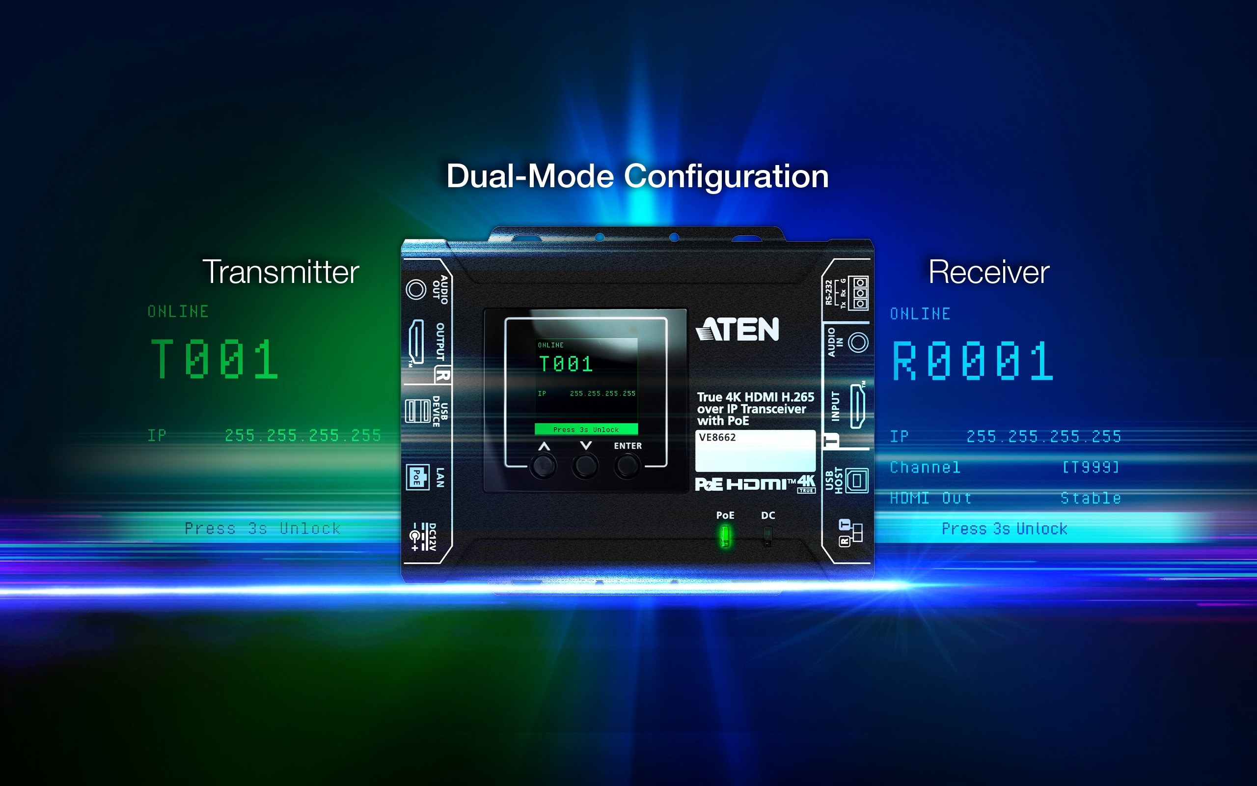 The ATEN VE8662 True 4K HDMI H.265 over IP Transceiver with PoE combines transmitter and receiver functions in one unit, offering flexible deployment and easy configuration for various AV solutions.