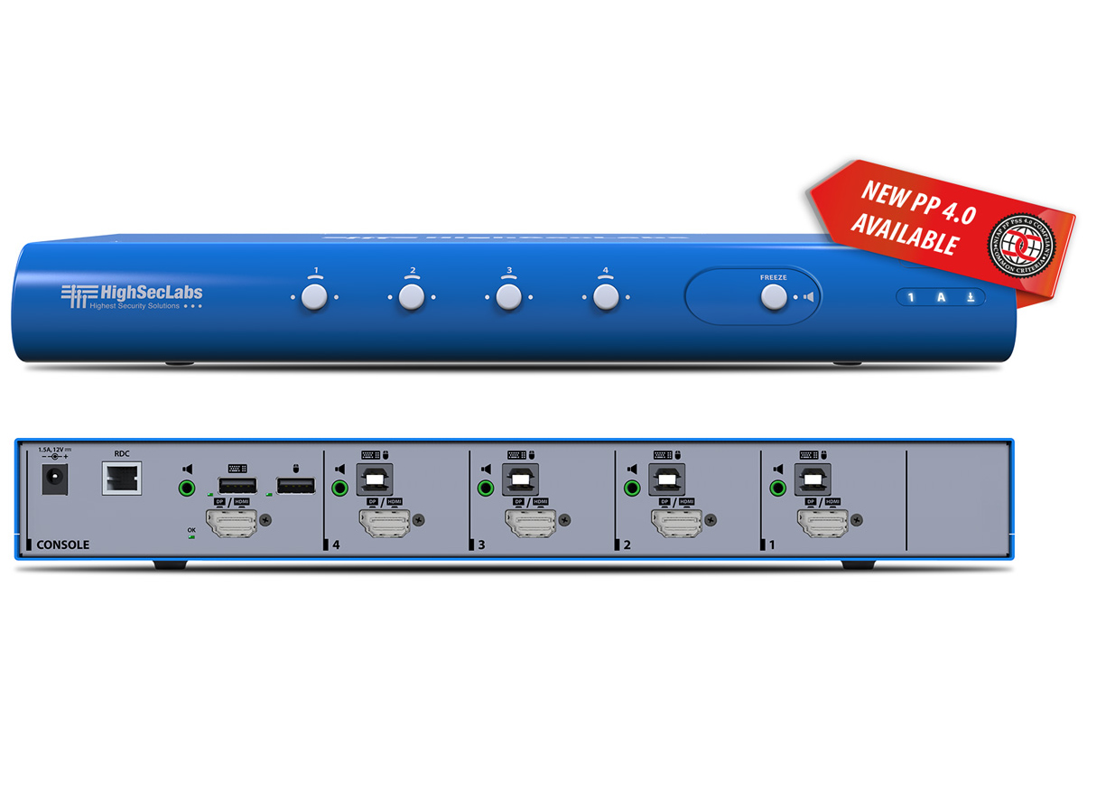 High Sec Labs SK41PH-4 Secure SH KVM Switch 4-Port DP/HDMI to DP/HDMI Video 4K 60Hz, PP 4.0