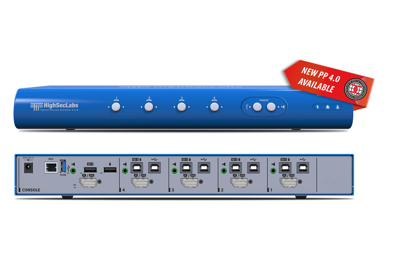 Keyboard Video Mouse (KVM) switch offered by HSL allows securely sharing keyboard, video, mouse, audio and USB peripherals between multiple computers while maintaining the highest isolation.