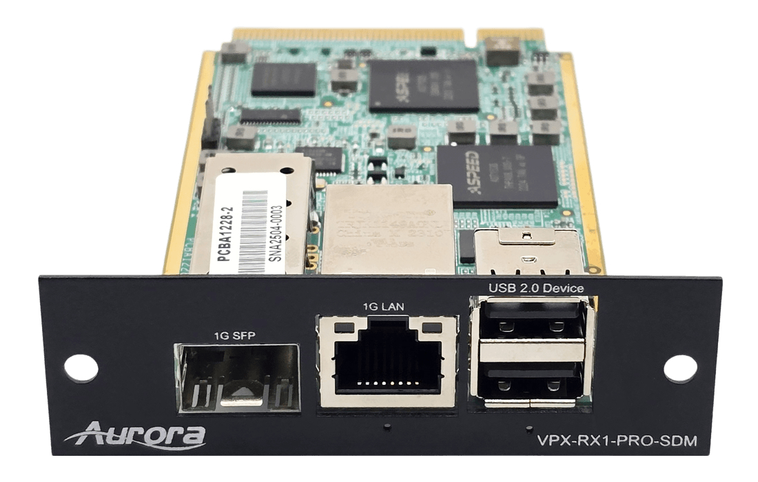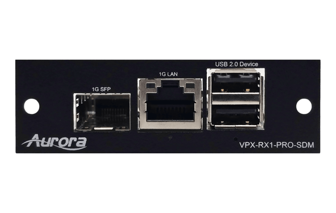The VPX-RX1-SDM is a 1G 4K60 AV over IP Smart Display Module (SDM Card). This will allow displays with Intel’s SDM slot to receive 4K 60 4:4:4 over the network using Aurora’s Mimix™ CODEC technology. Mimix™ compression allows for near perfect reproduction of video and graphic images at resolutions up to 4K60 4:4:4 over 1G networks. It has zero frame (1.78ms) latency and seamless switching for fast lag free content. The best part with SDM is no external boxes as everything is built into the display. The VPX-RX1-SDM also has advanced features like videowall, image rotation, channel mapping, 720p30 remote preview, roaming mouse, hotkeys, and more.