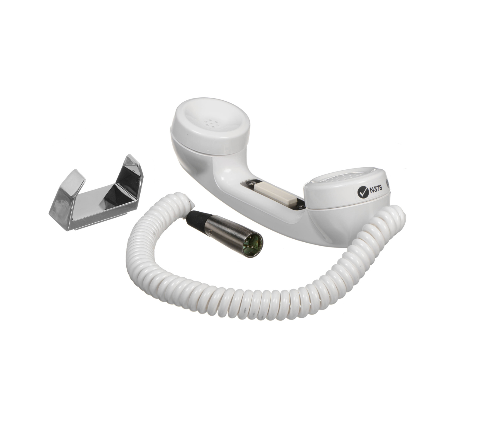 Telex HS-6000 Telephone Style Push-to-Talk Handset With Metal Hanger Bracket, 4′ Coiled Cable and A4M Connector for Intercoms, 200 Ohms Impedance