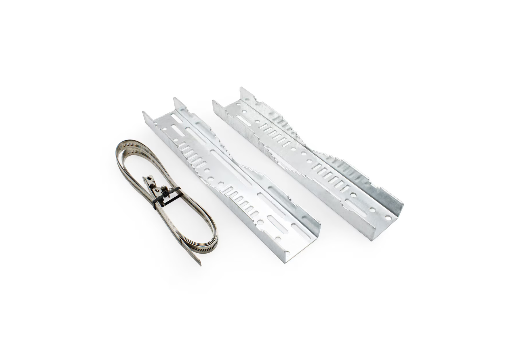 Securely mount IC Realtime NEMA enclosures onto poles with this heavy-duty galvanized steel kit, complete with stainless steel straps for long-term outdoor reliability.