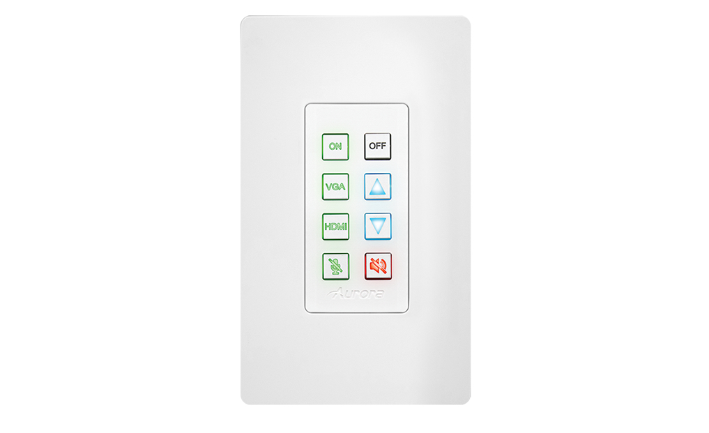 This Aurora Multimedia DXB-8i-G2-W 8-Button 1-Gang Backlit Button Control Pad with Serial, IR, and Ethernet Control Ports (Black) is a low cost 8 button single gang button panel. Designed to work with just about any Ethernet, RS-232, or IR device on the market, this unit allows any Ethernet, RS-232, or IR string to be assigned to the press, release, toggle, and hold of each button. The buttons can individually be lit red, green, or blue so in dimly lit areas it can be seen. Available in Decora® white or black, this button panel is designed to match. Low cost, low power, simplicity, and compatibility with just about any device on the market makes the DXB-8i the simple solution of choice.