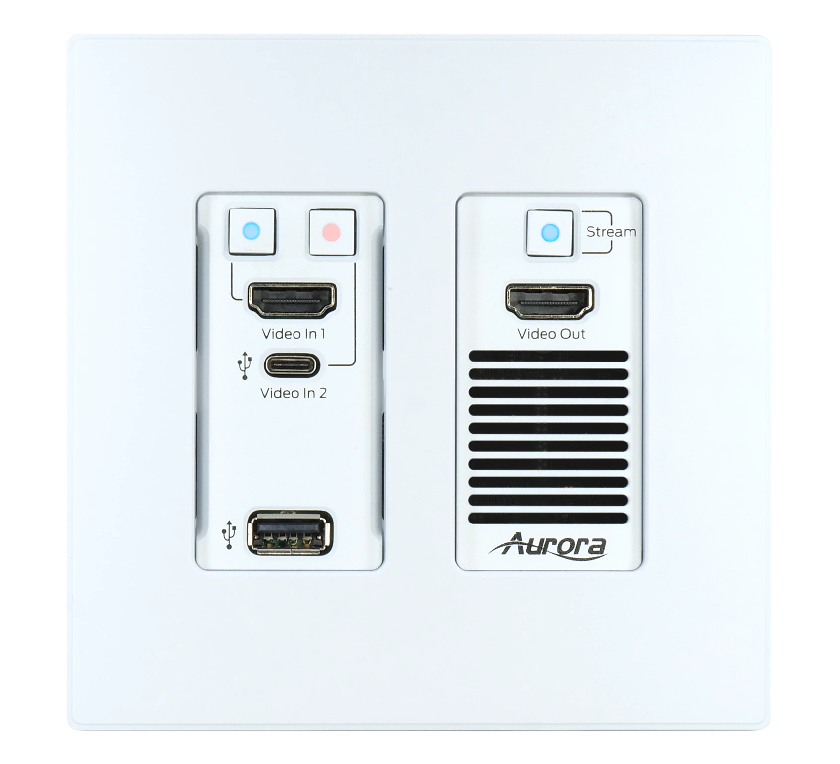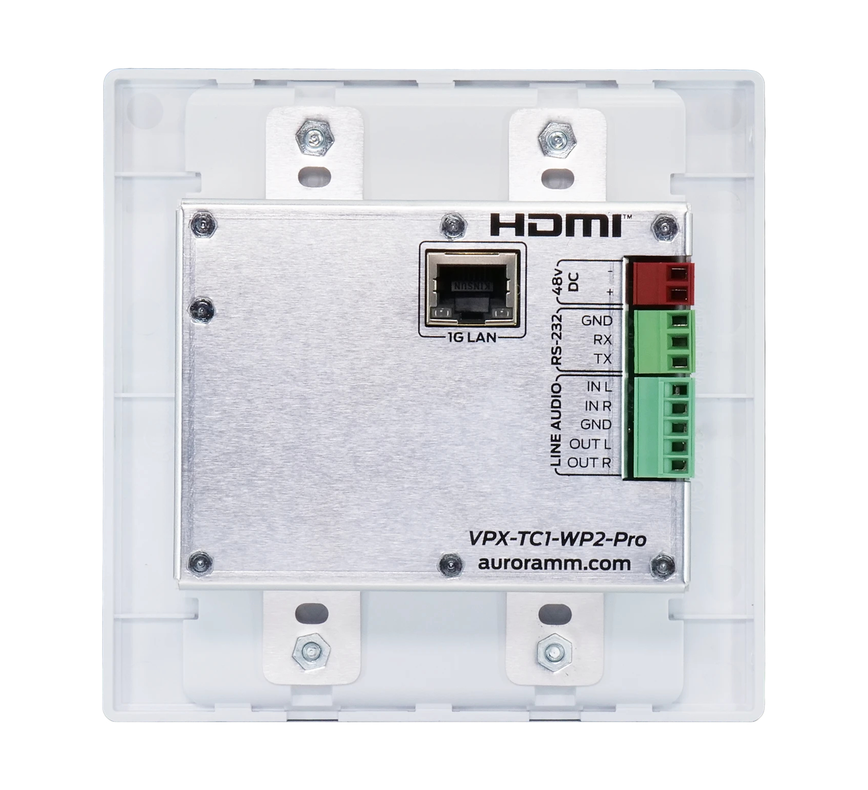 The VPX-TC1-WP2-PRO transceiver wall plate provides one of the most advanced 1G IP Streaming solutions on the market utilizing Aurora’s new Mimix™ CODEC technology. Mimix™ compression allows for near perfect reproduction of video and graphic images at resolutions up to 4K60 4:4:4 over 1G networks. It has zero frame (1.78ms) of latency and seamless switching for fast lag free content.
