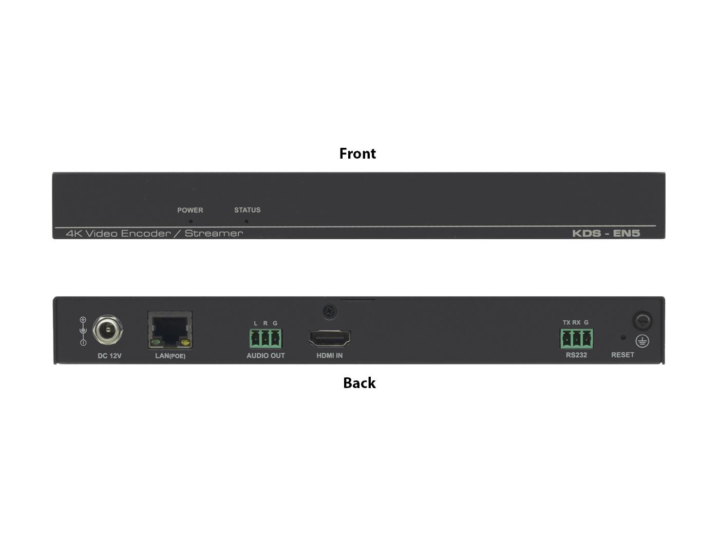 KDS−EN5 is a high performance 4K@60Hz (4:2:0), H.264 video encoder that supports PoE and video wall in unicast (one−to−one) or multicast (many−to−many) configurations.