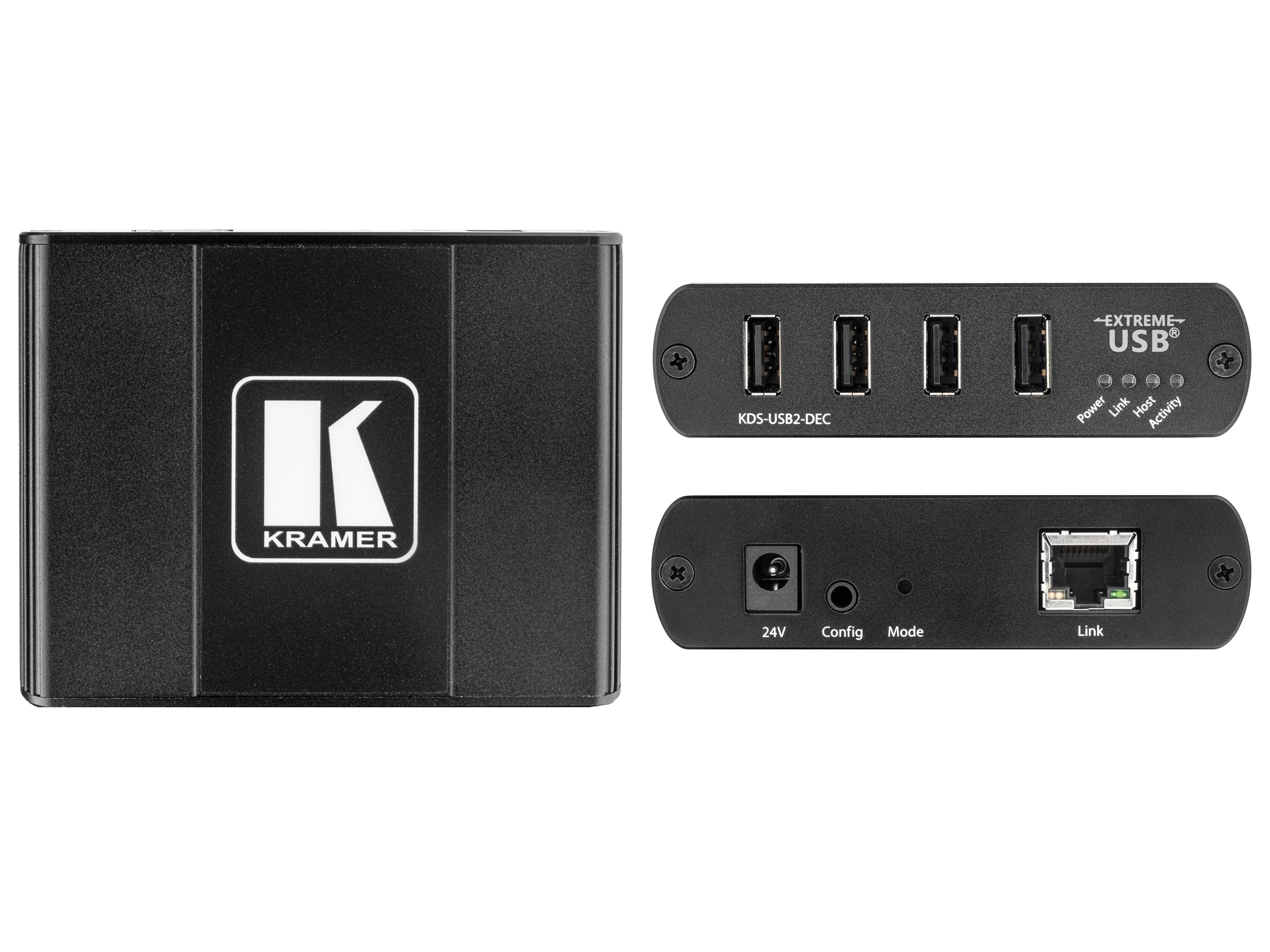 KDS-USB2 includes one encoder and one decoder for basic one-to-one USB extension, but with the purchase of additional units, you can diversify your USB extension system. For example, connect USB cameras in multiple locations to one computer or enable users in multiple locations to collaborate using the same host computer over a Local Area Network (LAN), in real time, using their own keyboards, mice and touch screens. Using Kramer’s cloud-based control platform, you can map and/or control these multi-unit setups.