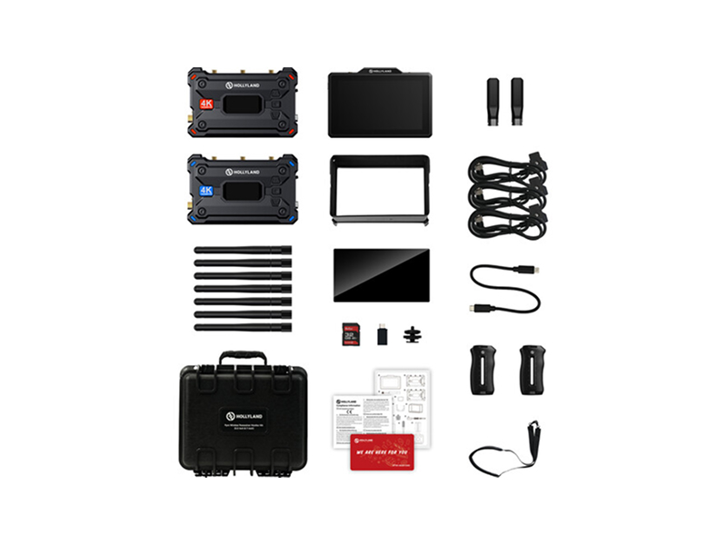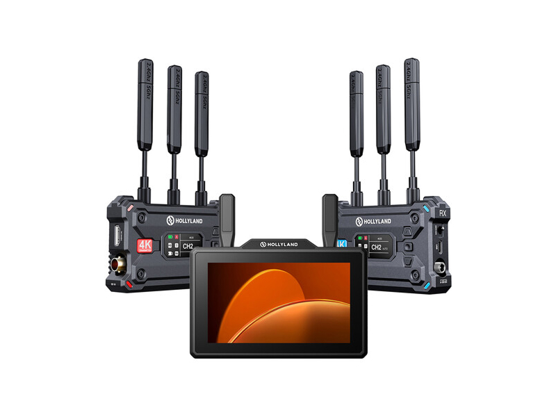 The system provides broadcast mode that allows one transmitter to connect to up to four receivers and supports auto dual-band frequency hopping for stable transmissions. The monitor offers a 1500 nit brightness LCD and image analysis tools including waveform, focus assist, false color, and zebras. Two transmission modes – HD mode and Smooth mode – let users balance bitrate and latency depending on distance and image requirements.