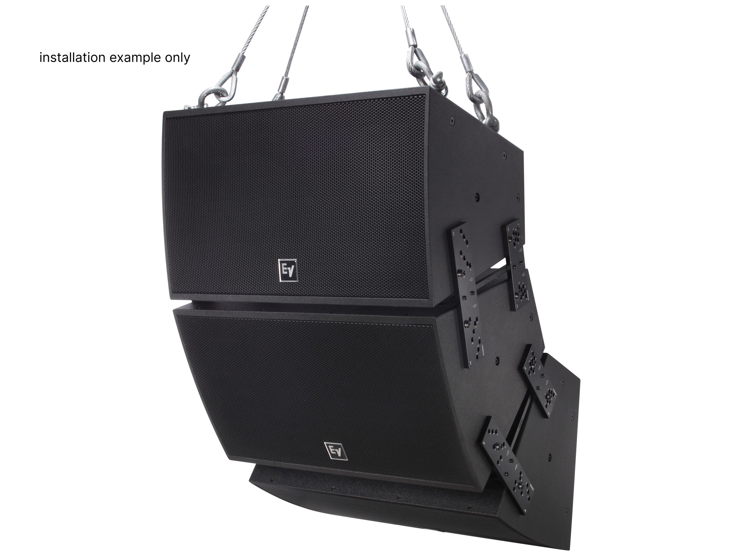 The EVF-1122D/99-FGB is a fully weatherized, arrayable two-way point-source loudspeaker designed to deliver articulated speech and musical reproduction in exposed installations. It combines a 12in low-frequency driver and a 3in titanium compression driver on a rotatable 90 x 90 constant directivity horn. The enclosure is compact and trapezoidal, enabling flown or ground-stacked arrays and flexible orientation – vertical or horizontal.