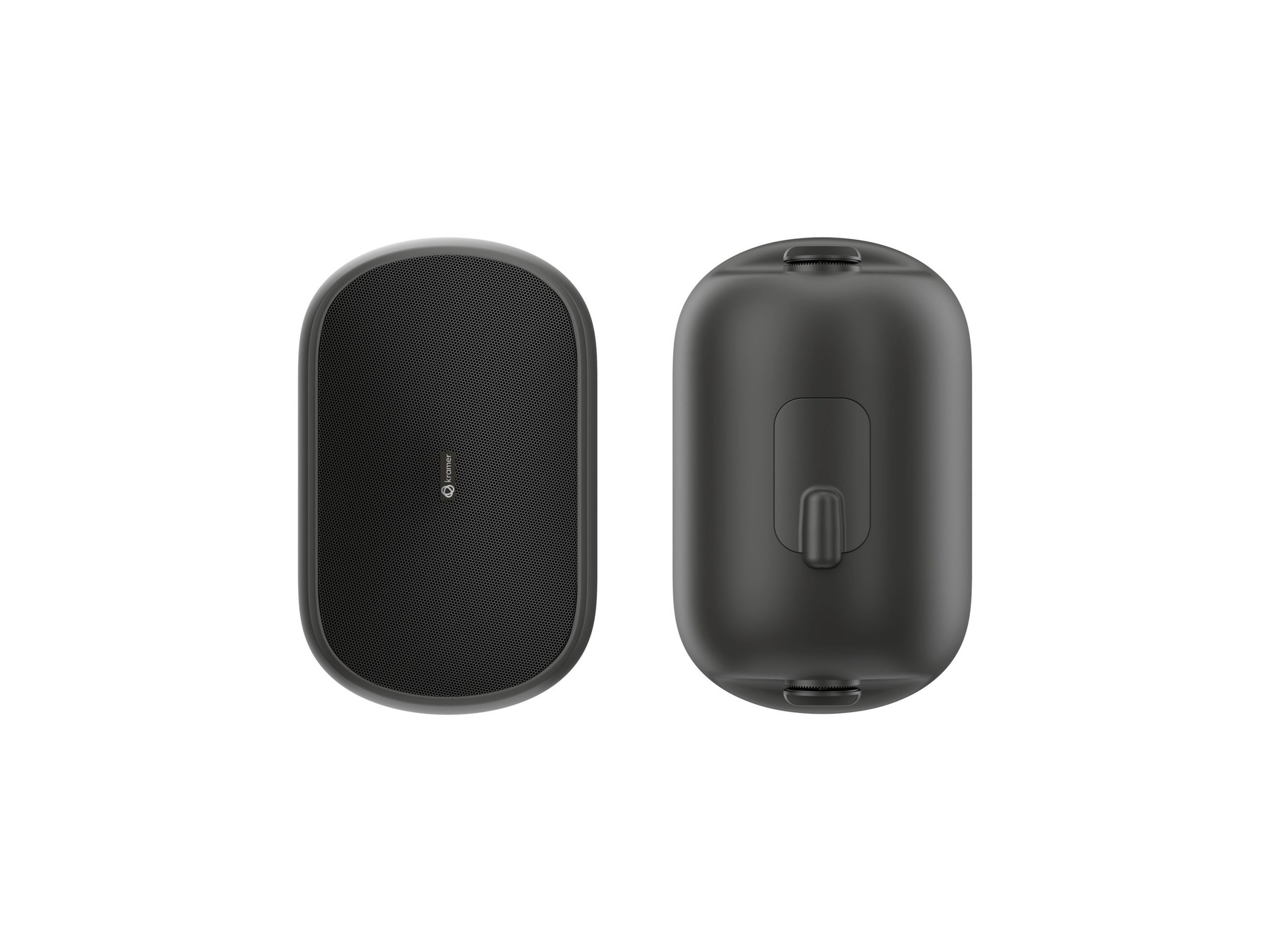 Connectivity is via RJ45 for Dante audio and PoE power, plus a factory reset button for field maintenance. Device configuration and firmware updates are handled using the vendor Speaker Utility software, and a control API supports integration with Kramer Control and third-party systems. A “find me” tone also assists installers in identifying individual units on the network.