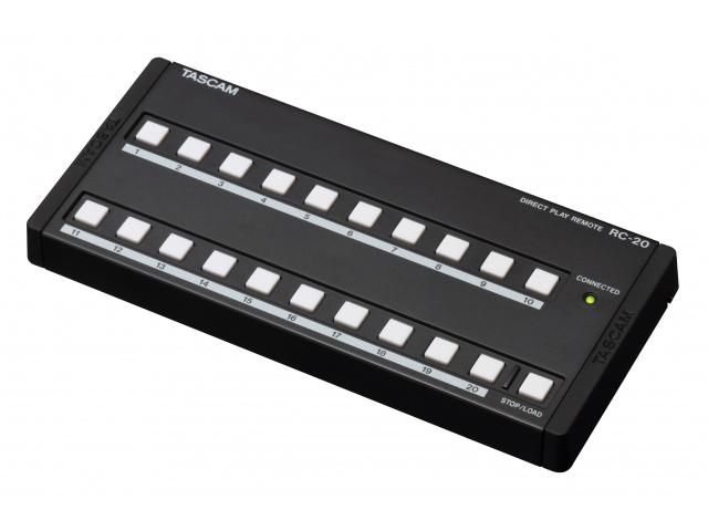 All of this is housed in a remote under 9” wide and available at a price never before possible. For theater, broadcast, PA or other installations where price and space are at a premium, the RC-20 and TASCAM player are an unbeatable combination.