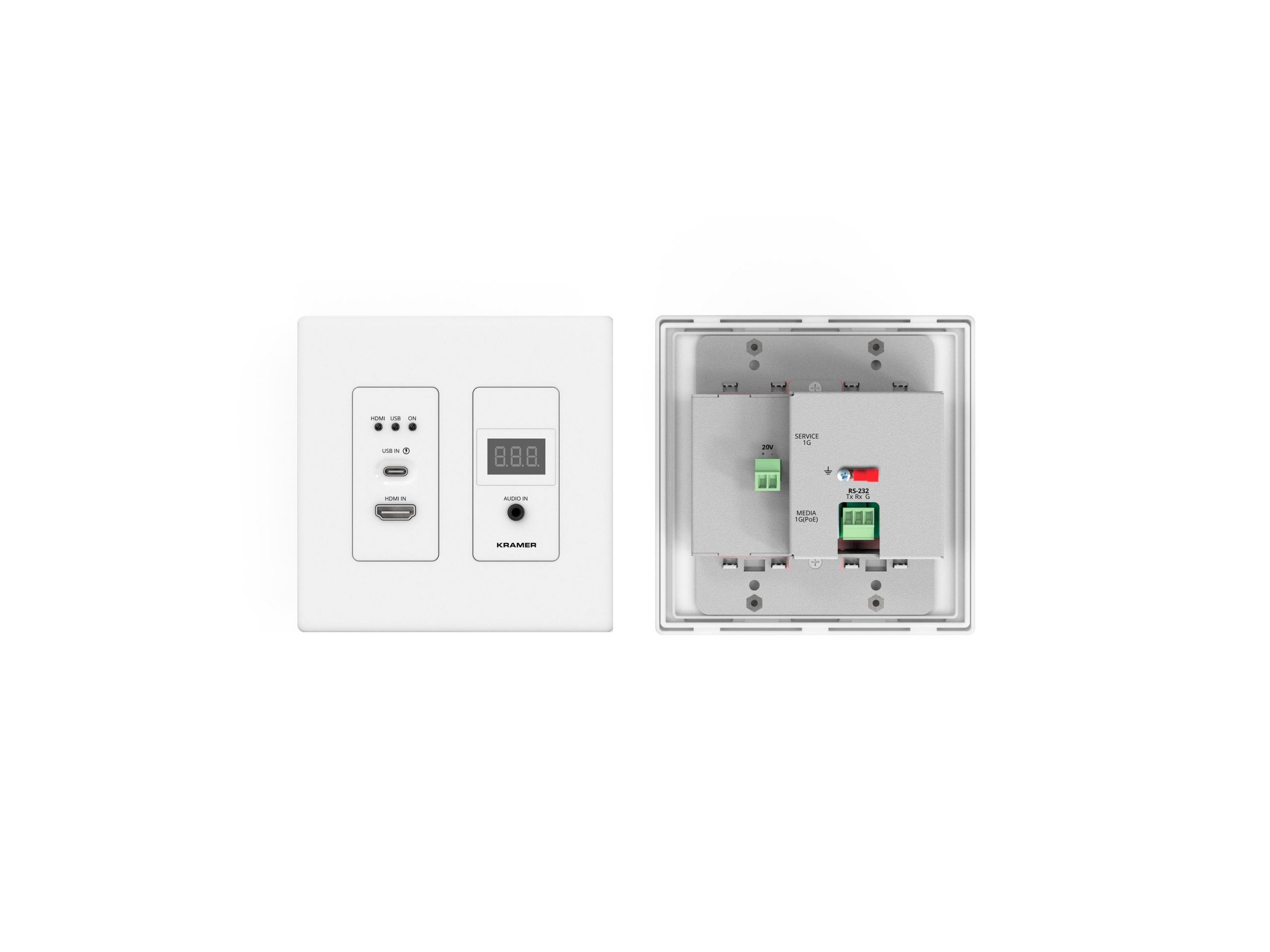 This wall plate encoder is suited to command and control rooms, lecture halls, corporate AV distribution, and public venues where many displays receive streamed sources. It supports centralized management and scales in large AVoIP systems while enabling room-edge source switching and USB-C charging when connected to a powered USB-C source. The small Decora style wall plate format integrates into standard 2-gang installations.