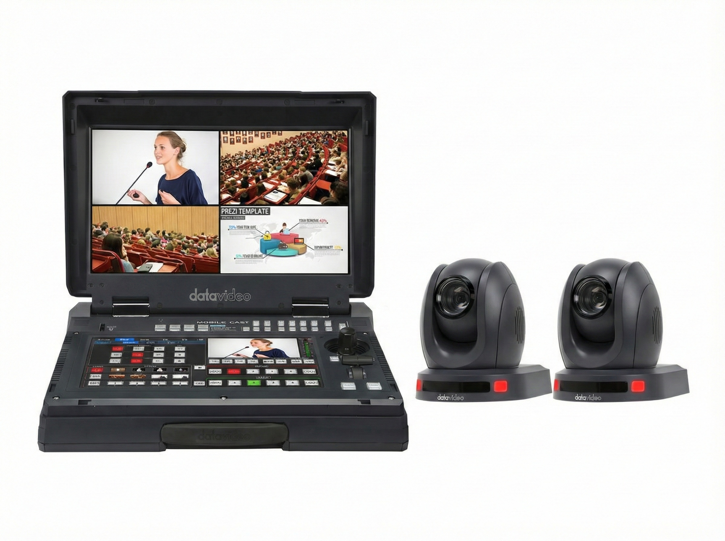 This system is suited to classrooms, auditoria, houses of worship and corporate stages where automated PTZ tracking and streamlined production are required. Operators can rely on preset recall, multiple framing modes and an integrated audio mixer to produce multi-camera programs with minimal crew. The package supports simultaneous streaming and local recording for distribution and archive workflows.