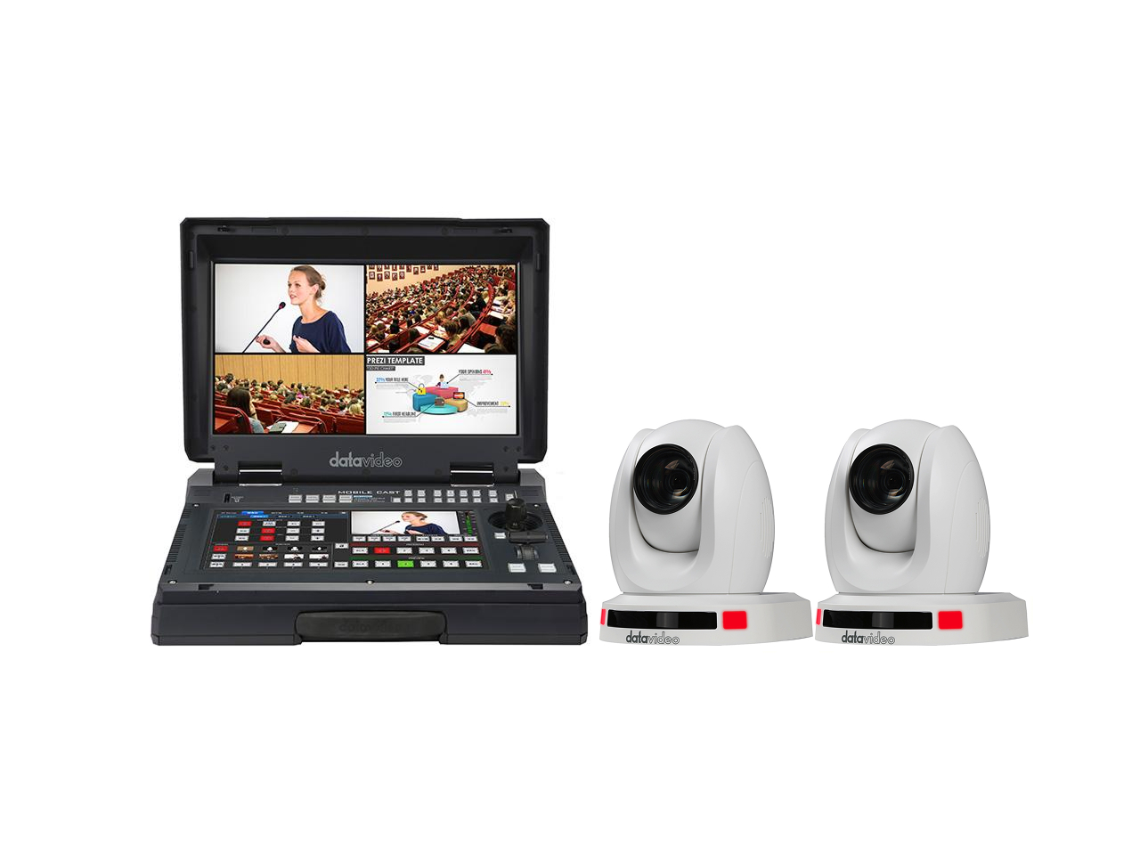 The EZ STREAM AI 20X W package combines a compact HDBaseT production switcher/controller and dual 20x PTZ cameras to deliver single-operator live production capability – switching, streaming, recording, monitoring and camera control in one solution. The system is designed to simplify live events and recorded productions by consolidating essential tools into a portable, rack-friendly case. It is ideal for operators who need reliable, repeatable multi-camera workflows with integrated auto-tracking.