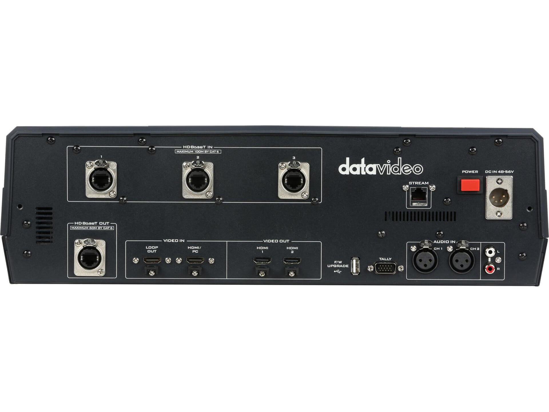 Connectivity is comprehensive – multiple HDBaseT inputs, HDMI program outputs, 3G-SDI and UVC capability are supported depending on camera output mode. Network streaming supports RTMP(S), RTSP, SRT and HLS with configurable bitrates and AAC audio encoding. Camera control and firmware updates are available via web UI or RS-422/RS-232 where supported for remote management.
