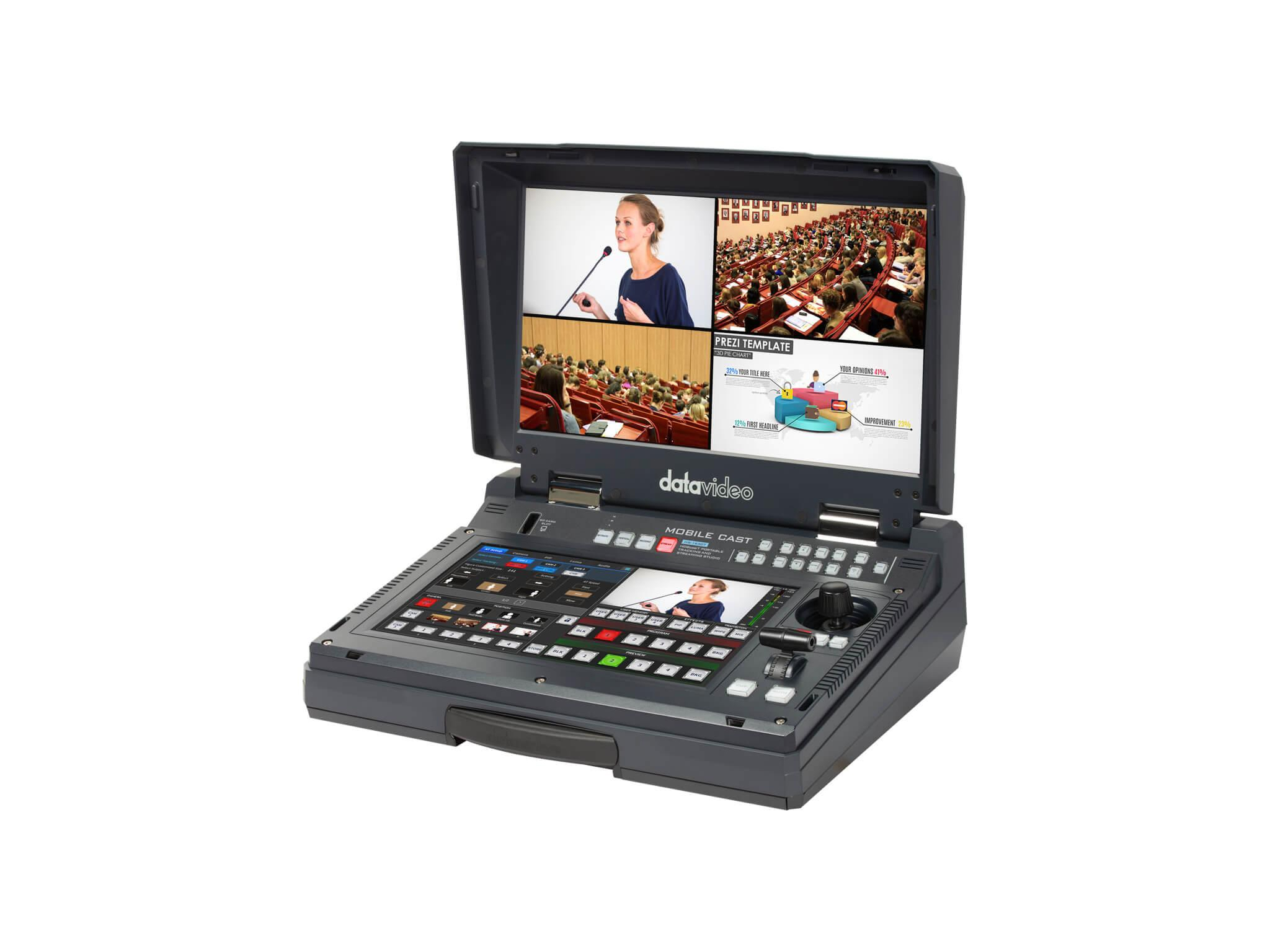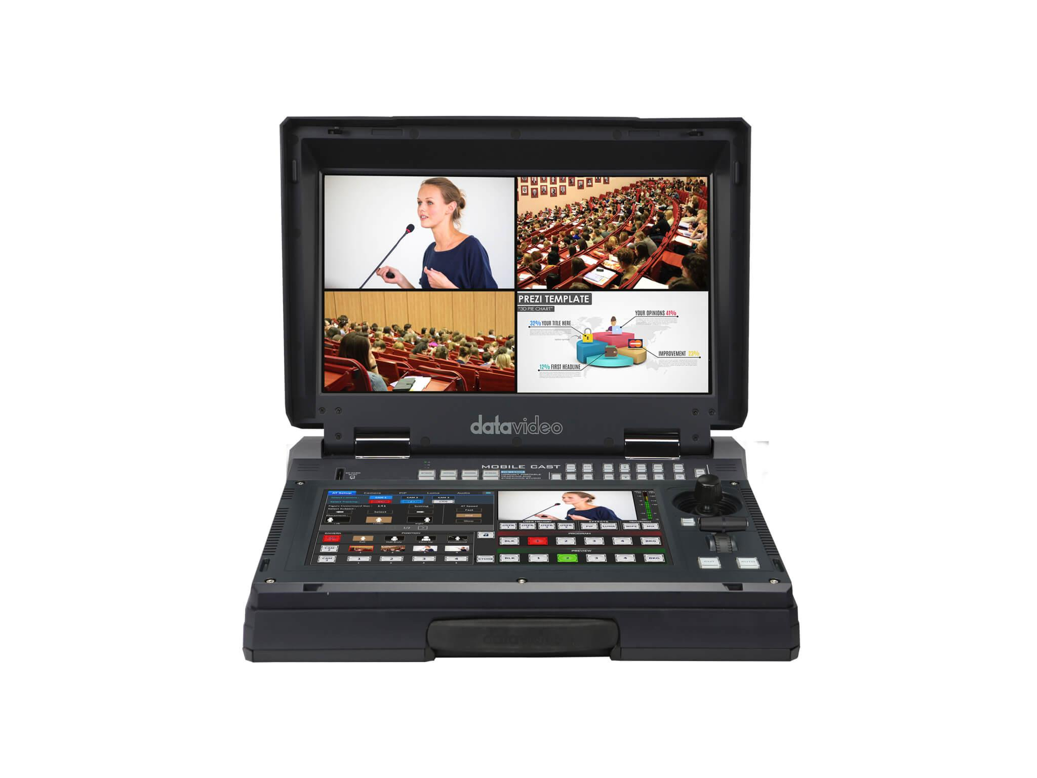 The HS-1650T is a compact, all-in-one production studio that combines multi-input switching, streaming, recording, audio mixing, monitoring, and PTZ camera control into a single portable unit. It is designed to streamline live production workflows by consolidating essential broadcast functions in one rugged case. The system targets event producers, educators, and conference operators who need rapid deployment and reliable output.