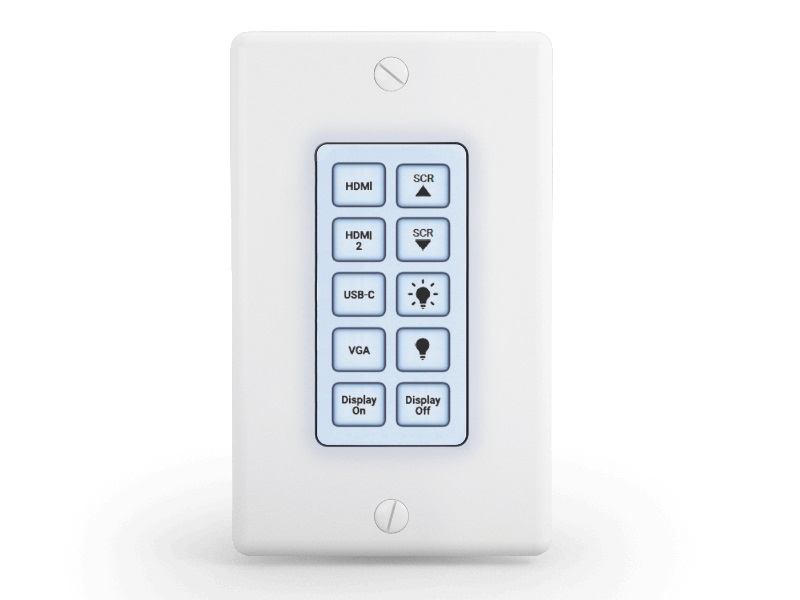 The SYN-KEY10 provides a comprehensive solution for today’s demanding corporate and education applications. Control all aspects of a room ranging from input switching, display power, lighting, shades/blinds, and even create macros which can trigger different scenes in one press.