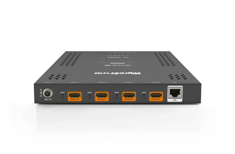 The NHD-124-TX is a 4 input to 4 network stream device encoder compatible with the NetworkHD 100 an ultra low bandwidth AV over IP solution for distribution of point-to-point, one-to-many and many-to-many over a managed network. With its standards-based approach to video encoding, fast and simple system configuration and robust feature set, it provides the best value in networked video distribution.