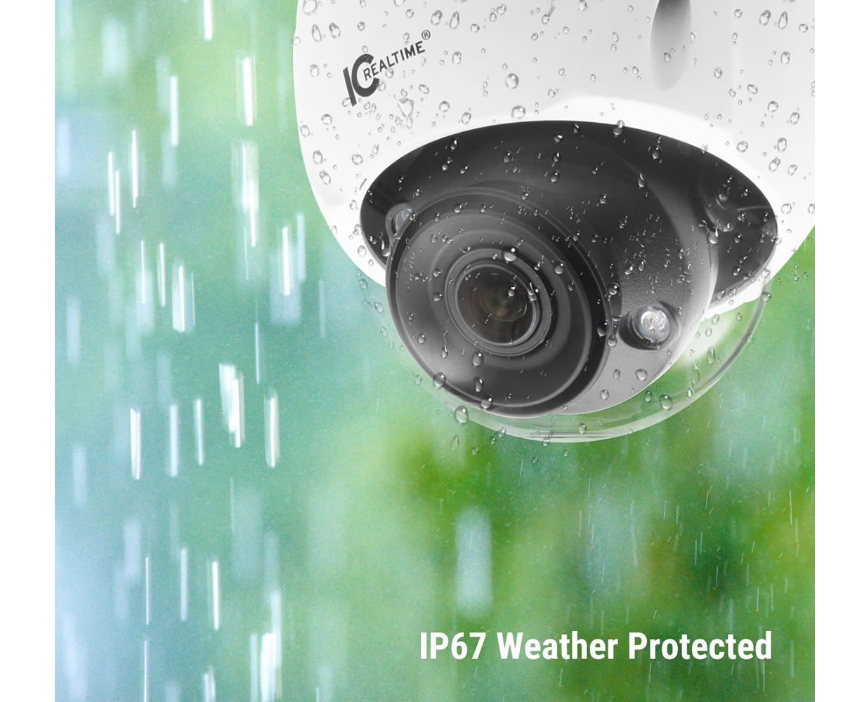 If you need an indoor/outdoor rated POE eyeball dome camera that delivers 4MP QHD Starlight video & audio, future-proof AI & metadata streaming detection, three widely adjustable VMS-compatible streams, built with IC Realtime’s legendary dependability backed up by the video industry’s longest 10 Year Limited Warranty, then IPMX-E40F-IRW3 is your best camera option.