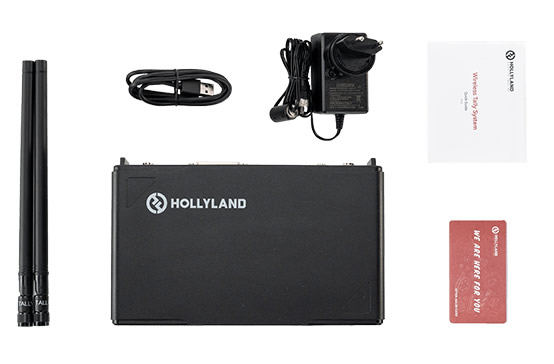 This Hollyland Tally Station is designed for use with the Hollyland Wireless Tally System. It boasts a transmission range of up to 2600′ and a transmission delay of <150 ms. Two Wireless Tally System antennas come with the unit, as well as a USB-A to USB-C cable and a DC power adapter with respective cord.
