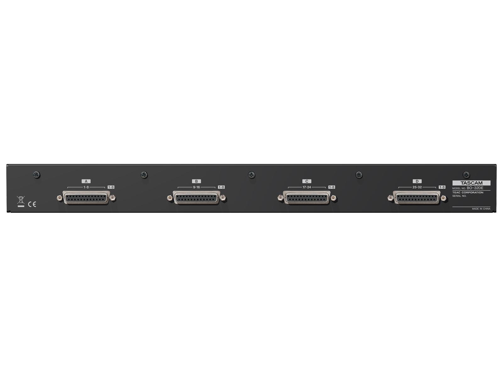 The TASCAM BO-32DE is a rugged, rackmounted audio adaptor designed for professional installation. 32 front-panel Eruoblock connectors are internally bridged to four D-Sub output connectors on the rear panel, providing fast and easy I/O and interconnectivity between CD players, Digital Audio players, Mic Preams, Zone Mixers, Distribution Amplifiers Audio over IP Convertors and more.