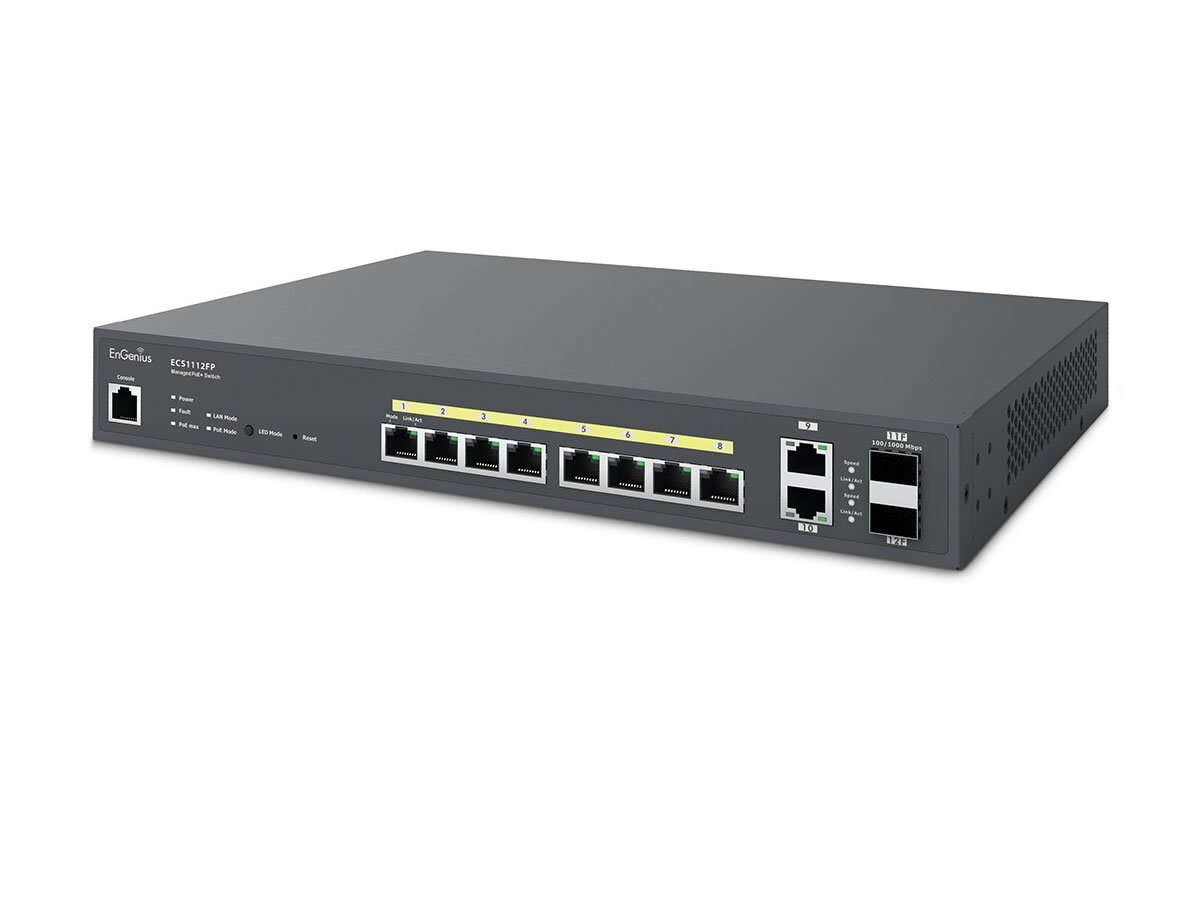 Key features include full Layer 2+ switching, a 128 Gbps switching capacity and four dual-speed 10Gb SFP+ uplink ports for high-bandwidth aggregation. All 24 copper ports support 802.3at/af to power cameras, access points and phones while preserving uplink bandwidth via SFP+ slots. The ECS1528FP also supports VLANs, L3 static routing and advanced QoS to maintain predictable traffic performance.