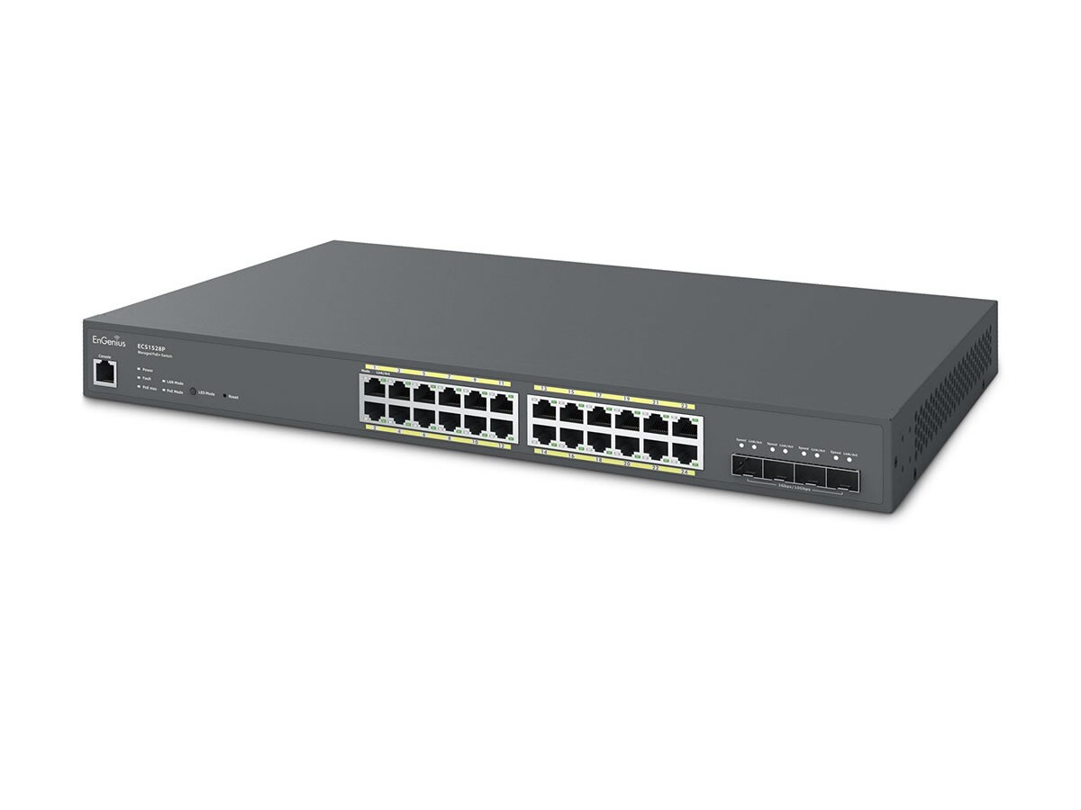 The ECS1528P is a cloud-manageable Layer 2+ network switch designed to deliver reliable gigabit connectivity and PoE+ power across medium and large deployments. It provides 24 10/100/1000Base-T Ethernet ports with PoE+ support and four dual-speed 10Gb SFP+ uplink ports. The switch supports both cloud and on-premises management to match administrative models and deployment requirements.