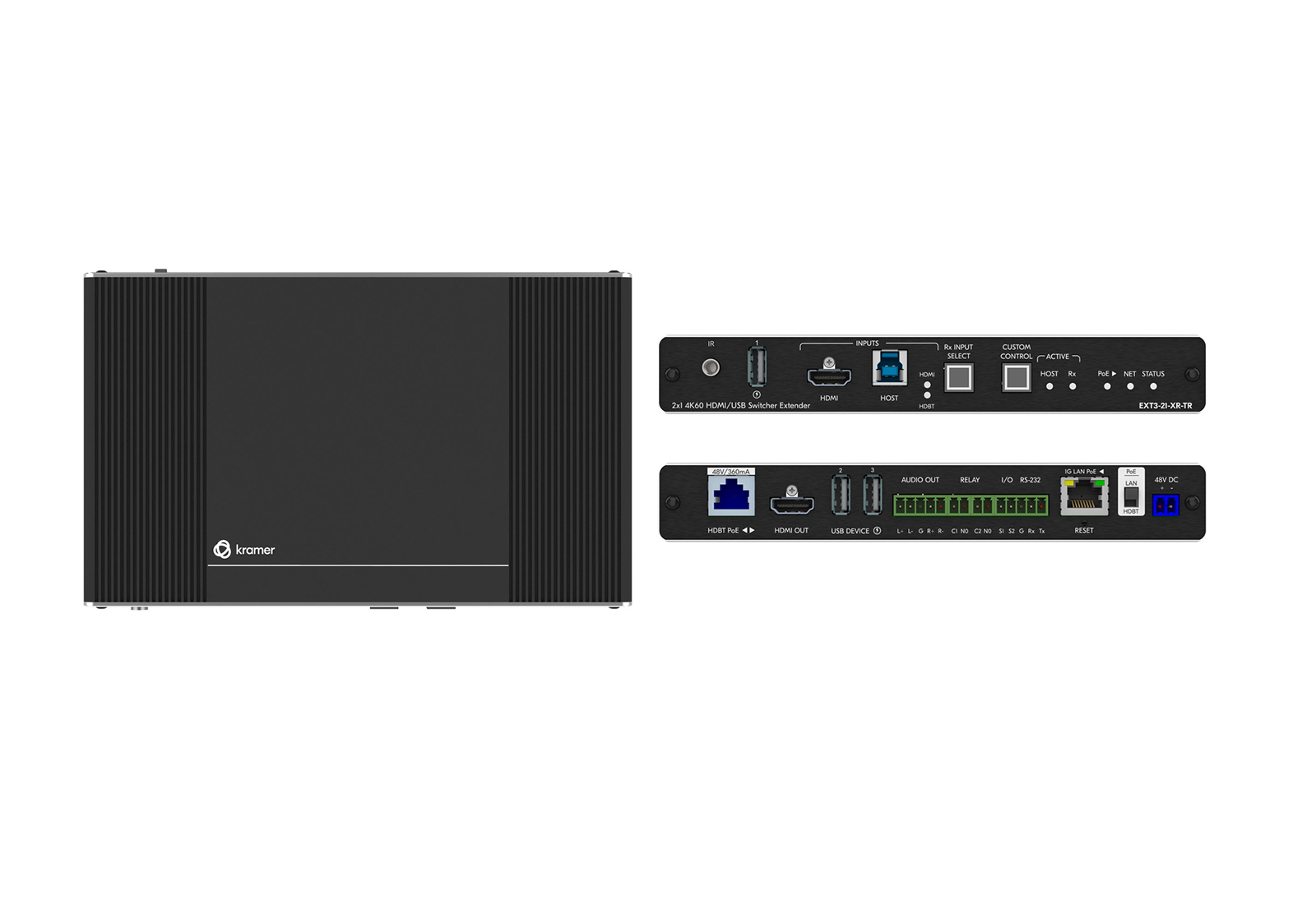 The EXT3-21-XR-TR is an HDBaseT 3.0 extender that converts and transmits HDMI, USB, Ethernet, RS-232 and IR signals over twisted-pair copper cabling. It operates as either a transmitter-side converter or a receiver-side auto-switcher to suit flexible deployment. The unit supports uncompressed 4K@60Hz 4:4:4 video and extends signals up to 100m over CAT cables.