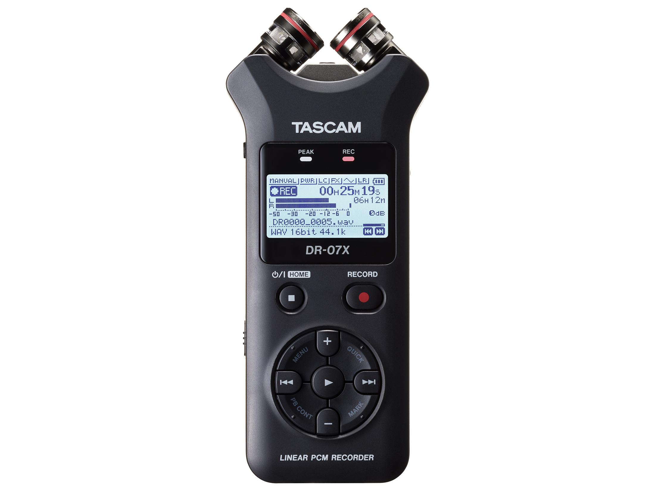 DR-07X bring high-quality recording to an easy-to-use portable powerhouse with a size and price that anyone can handle. A pair of condenser microphones handles small to loud sound up to 125dB SPL with the sensitivity to capture every detail.
