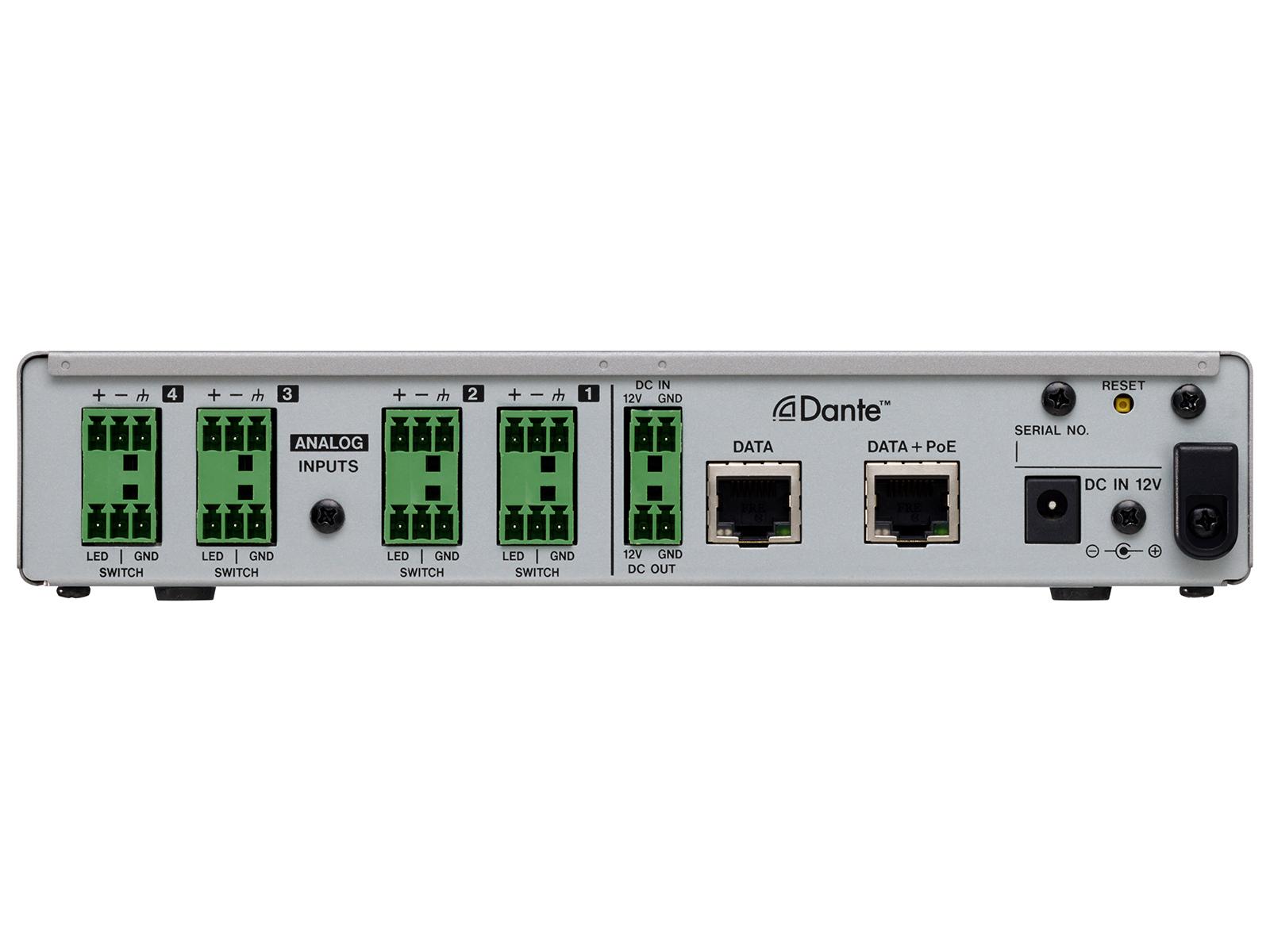 The MM-4D/IN-X converts 4-channel mic/line input signals into 4-channel Dante output signals. It also supports 4-channel Dante input/output making it possible to use audio sources within an established Dante network.