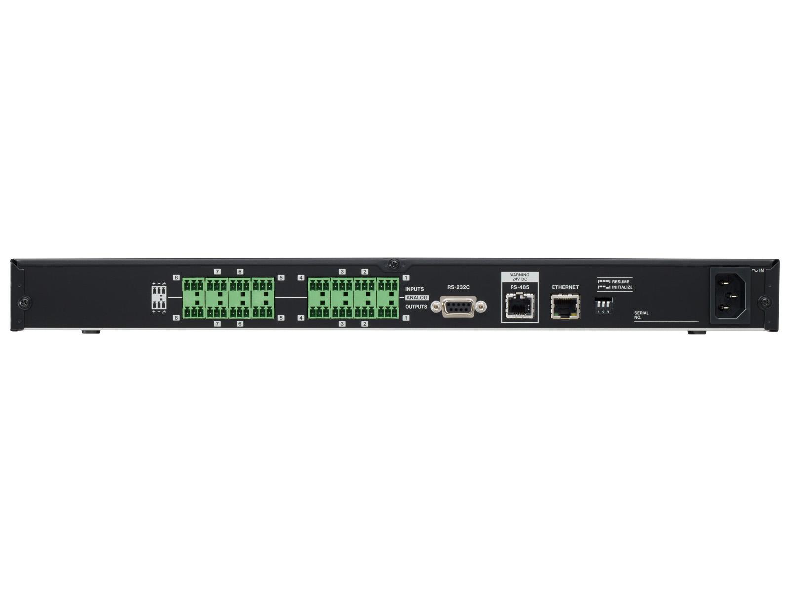 The TASCAM MX-8A is a Matrix Mixer equipped with 8 mic / line inputs and 8 line outputs as well as integrated DSP for audio optimization in various environments and configurations Custom control apps are also available to allow easy setup and adjustment by both system integrators and end users.